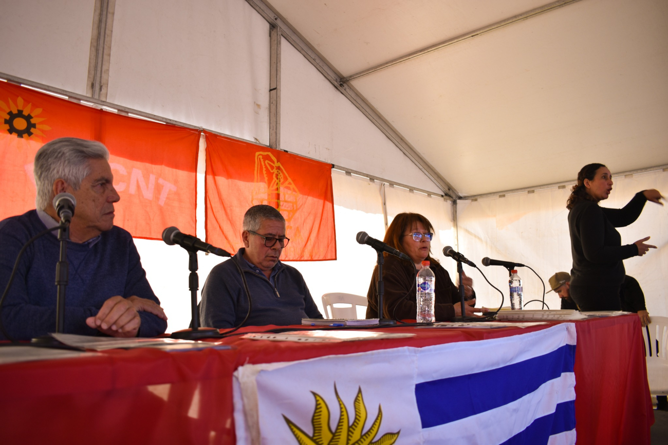 Como parte de la actividad desplegada en la jornada, se instaló una carpa central en la Plaza Primero de Mayo, frente al Palacio Legislativo, en la que se desarrollaron distintas mesas de conversatorio en las que se abordaron problemáticas tales como la salud mental y el diálogo social sobre Seguridad Social, a cargo del director del Equipo de Representación de los Trabajadores en el BPS, Carlos Clavijo y de la integrante del ERT-BPS, Lorena Luján.