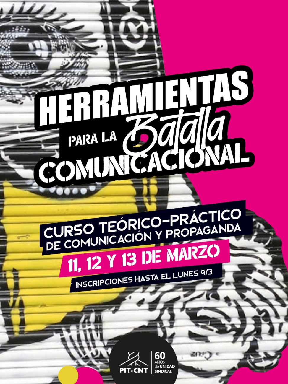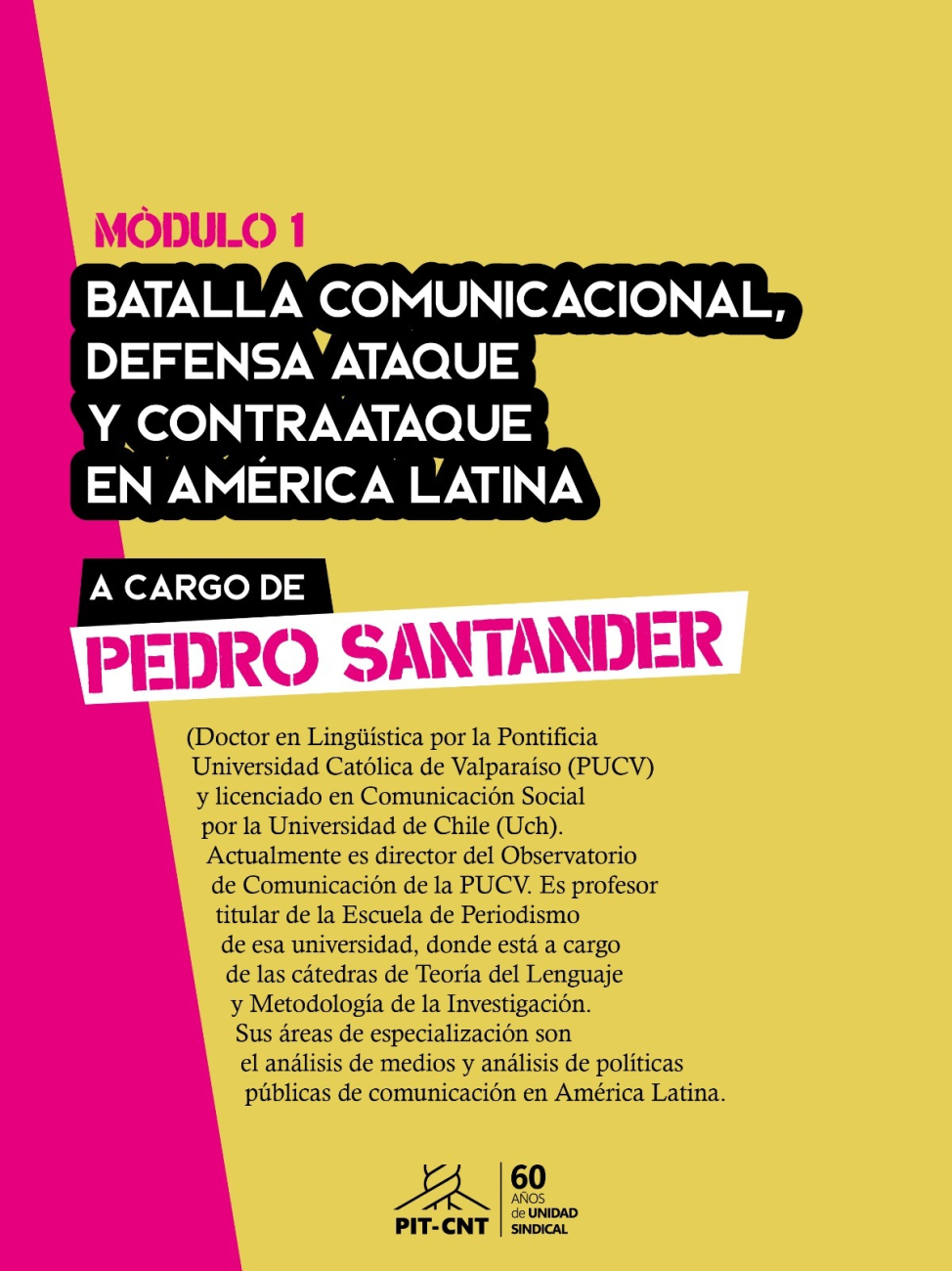 Los días 11, 12 y 13 de marzo, el PIT-CNT llevará a cabo el segundo curso de formación en propaganda y comunicación, bajo la premisa "Herramientas para la batalla comunicacional". Será un curso teórico práctico que tendrá distintos módulos y contará con la presencia del escritor, docente, lingüista e investigador chileno, Pedro Santander, como invitado especial.