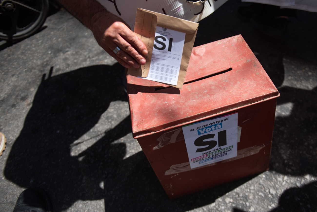 Con la convocatoria del PIT-CNT, en respaldo a los sindicatos de la educación y otros gremios que se encuentran en conflicto, miles de trabajadoras y trabajadores marcharon por el centro de Montevideo en protesta contra la reforma educativa y en defensa del empleo, denunciando recortes en educación, salud y jubilaciones y a favor de la papeleta blanca del Sí por la seguridad social.