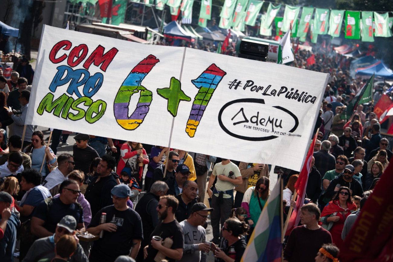 Hoy que se celebran 40 años de recuperación y de ejercicio ininterrumpido de la democracia, el movimiento sindical uruguayo se congregó y ocupó unas cuantas cuadras de la Avenida del Libertador, con sus banderas y consignas, reclamos y propuestas, canciones y abrazos.