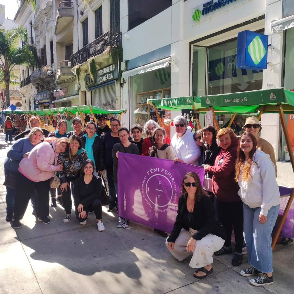 La primera feria se realizó en diciembre de 2020, como respuesta a la situación dramática que vivían tantas mujeres en distintos barrios durante la pandemia. De este modo, luego de realizar las gestiones administrativas ante la Intendencia de Montevideo, las mujeres emprendedoras pudieron exponer y vender sus productos artesanales en la primera Femi Feria que se realizó en la plaza Cagancha. “En cada feria le pedíamos a las emprendedoras que llevaran un alimento no perecedero para aquella compañera que por algún motivo no tuviera buenas ventas, por lo menos pudiera llevarse una canasta solidaria”, explicó Foulques al Portal del PIT-CNT.