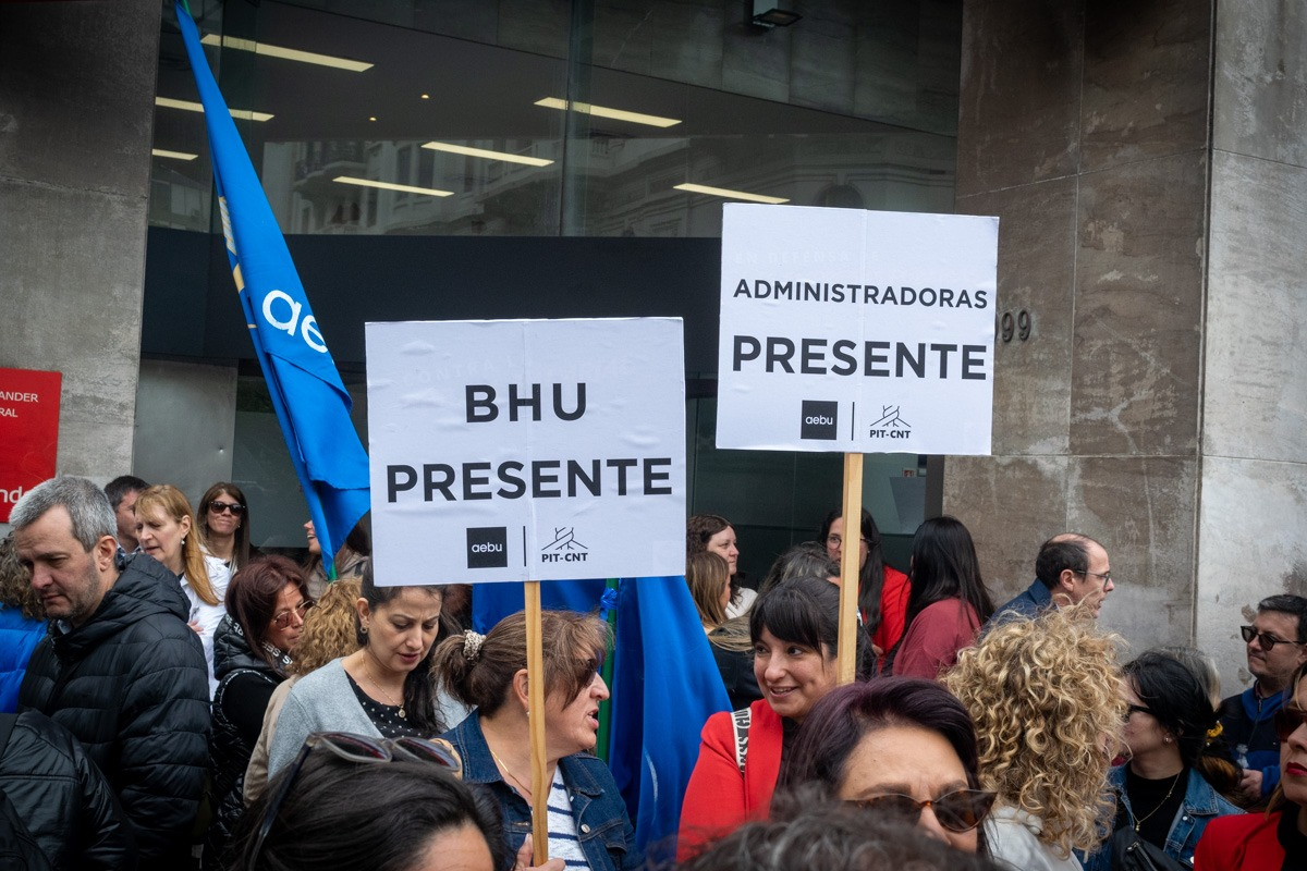 En un comunicado de prensa emitido este martes, el sindicato bancario informó de la paralización de este martes y adelantó que sobre el mediodía se realizaría una concentración frente a la Casa Central del Banco Santander, ubicada en la Avenida 18 de Julio esquina Julio Herrera y Obes.