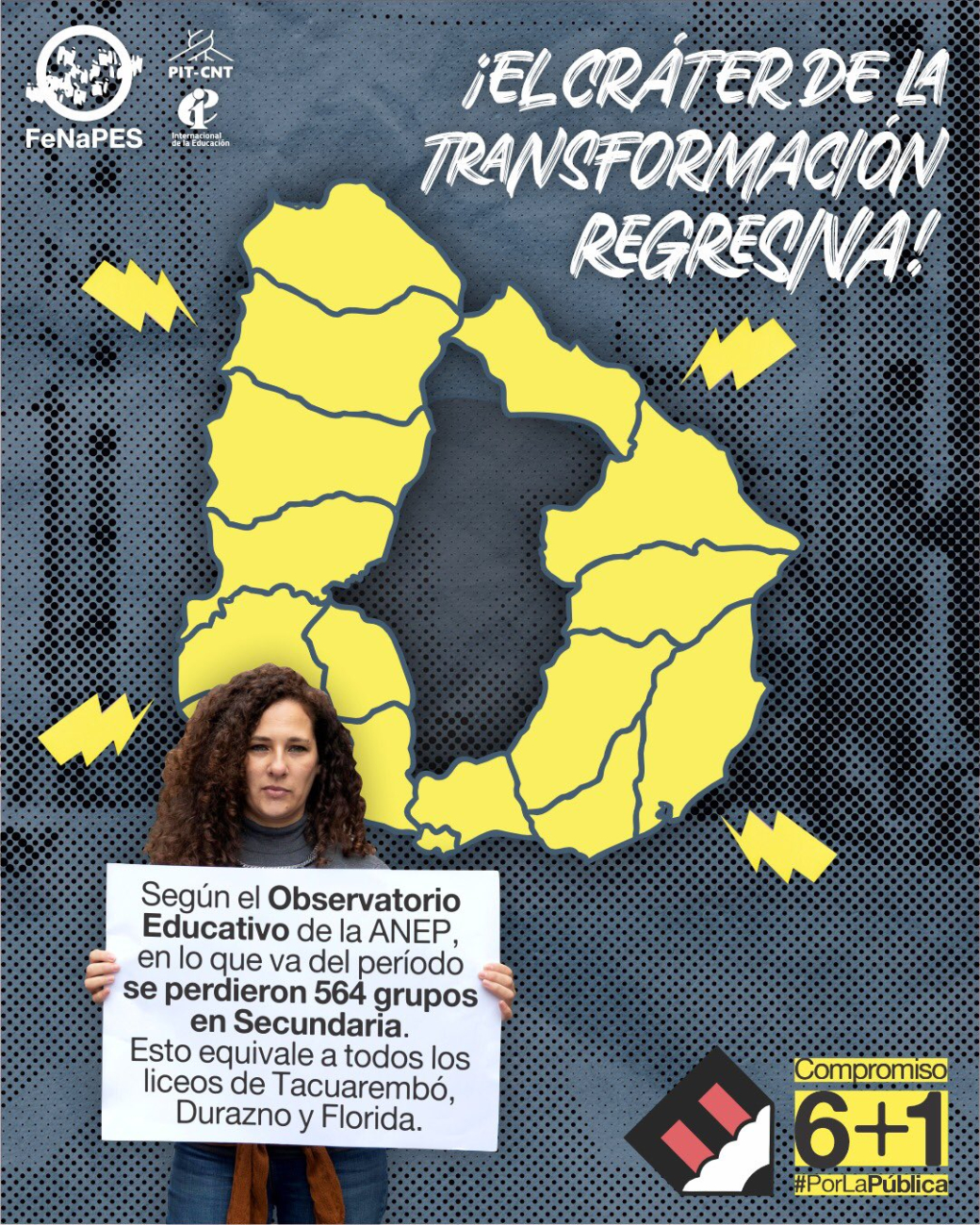 FENAPES informó que el paro de 48 horas es por educación y por trabajo, denunció el carácter regresivo de la reforma educativa, e indicó que, según el Observatorio Educativo de la ANEP, se perdieron 564 grupos de Secundaria, lo que equivale a todos los liceos de Tacuarembó, Durazno y Florida.