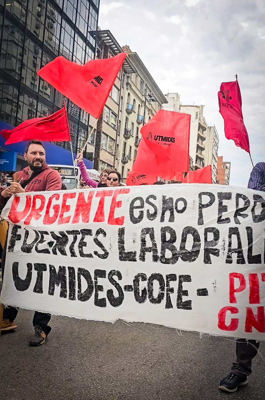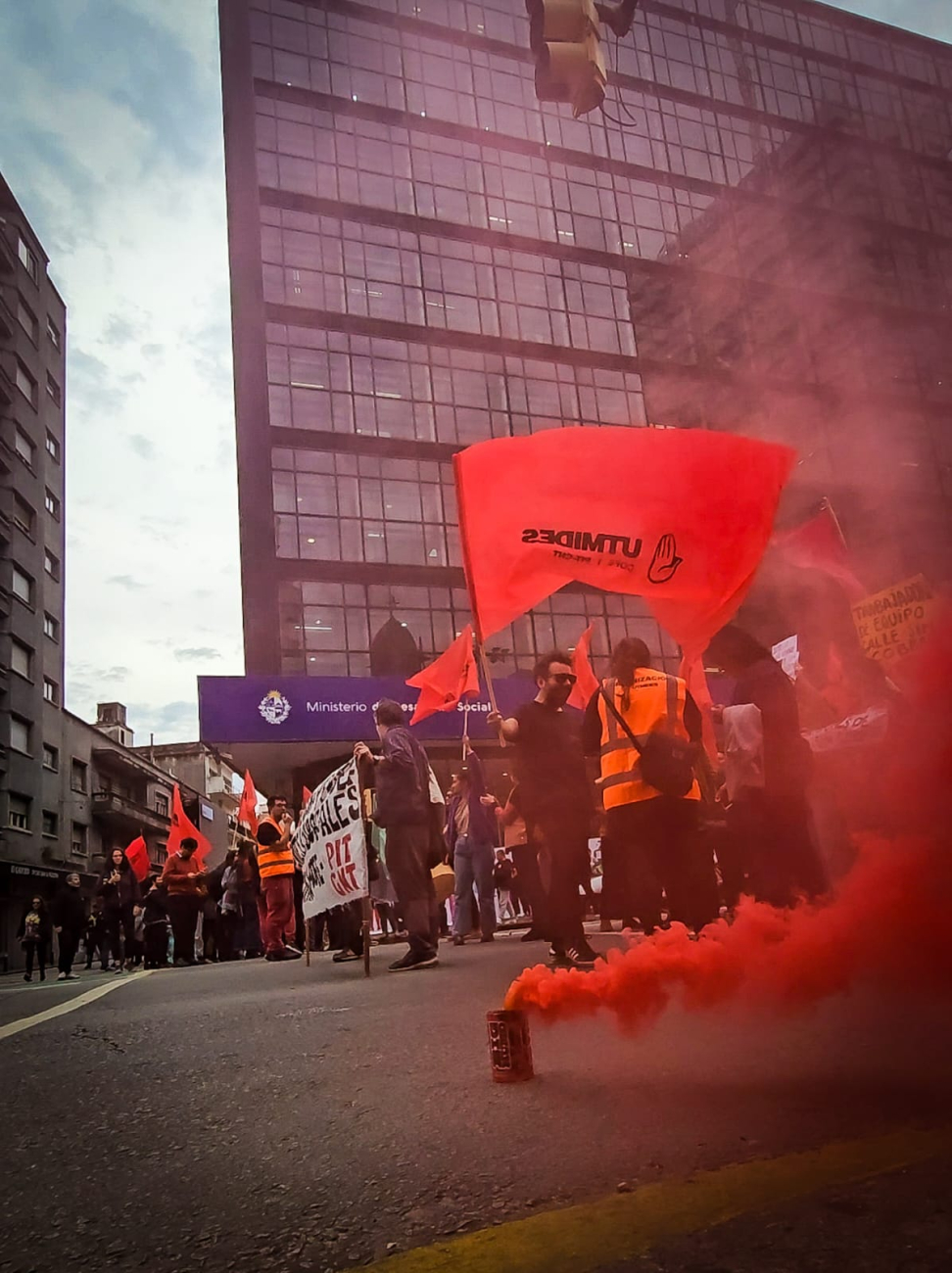 La Unión de Trabajadores del Ministerio de Desarrollo Social (UTMIDES) realizó este jueves 13 de junio un paro general parcial de 12 a 14 horas, con movilización en la sede central del Ministerio de Desarrollo Social (MIDES), en rechazo al despido de 13 trabajadores, por el aumento de la carga horaria de 300 funcionarios sin el pago correspondiente y por hechos de violencia física.