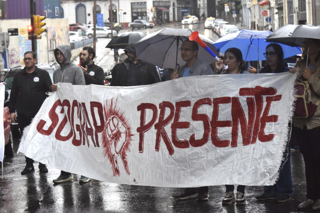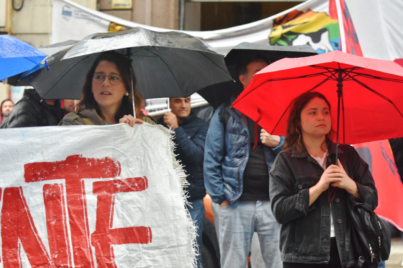 Bajo una lluvia incesante, el dirigente exigió que se resuelva "ya" sin más dilatorias el Consejo de Salario que venció hace diez meses. "Esta Federación tiene la definición clara de seguir dando la pelea por nuestros salarios", subrayó.