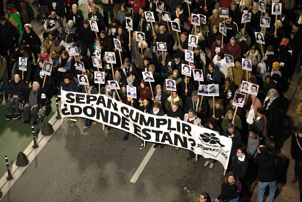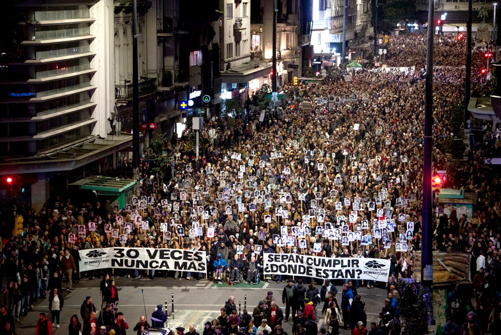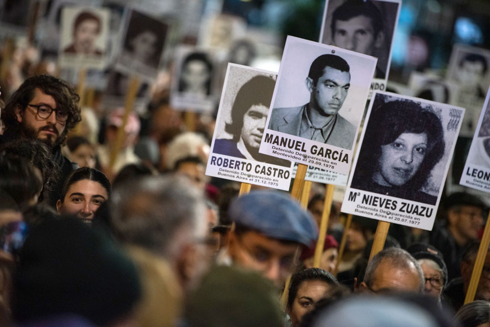 Una imponente multitud en silencio marchó por la avenida 18 de Julio de la capital del Uruguay con fotos y carteles con los nombres de los uruguayos detenidos desaparecidos en la dictadura cívico militar.