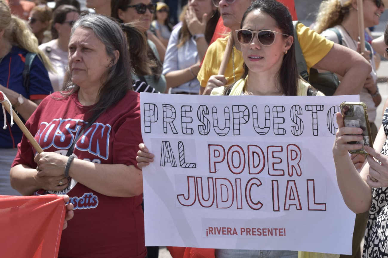 Cientos de magistrados, informáticos, actuarios y funcionarios del Poder Judicial -asociados en la Intergremial Judicial- se movilizaron este jueves 27 y se concentraron frente al Palacio Legislativo en reclamo de recursos presupuestales, porque señalan que “no es justo que se exija una atención de calidad sin proveer las partidas presupuestales mínimas que aseguren el efectivo cumplimiento de uno de los cometidos esenciales del Estado, como lo es brindar justicia”.