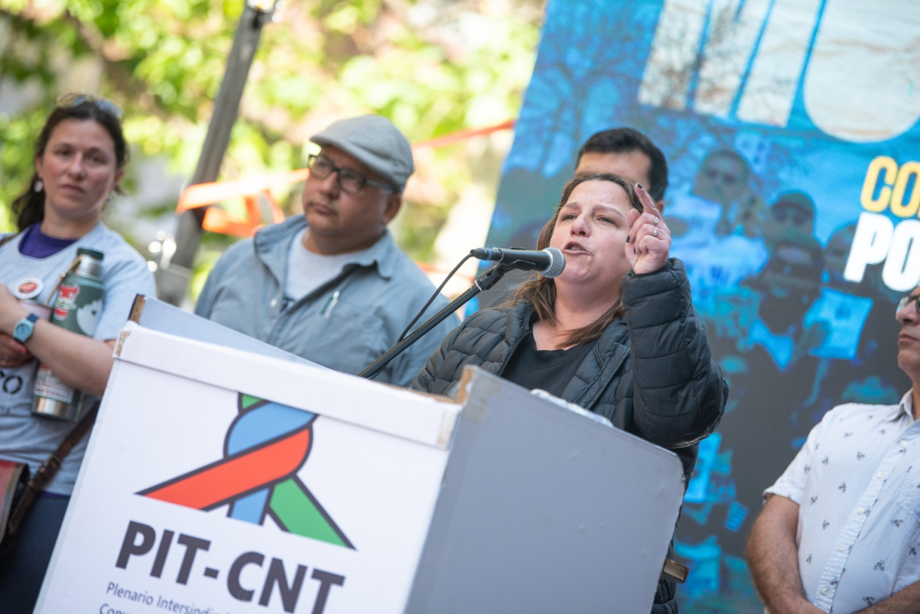La concentración comenzó poco después de las 9:30 horas en el Monumento al Gaucho, seguida de una multitudinaria movilización por 18 de Julio hasta la calle Andes, donde se realizó el acto central. Hicieron uso de la palabra José Olivera, presidente de FENAPES; Nathalie Barbé, secretaria general de la Asociación de Trabajadores de la Seguridad Social de Montevideo (ATSS); y Enrique Méndez, dirigente de la Federación de Trabajadores de la Industria Láctea (FTIL) y secretario de Organización del PIT-CNT.