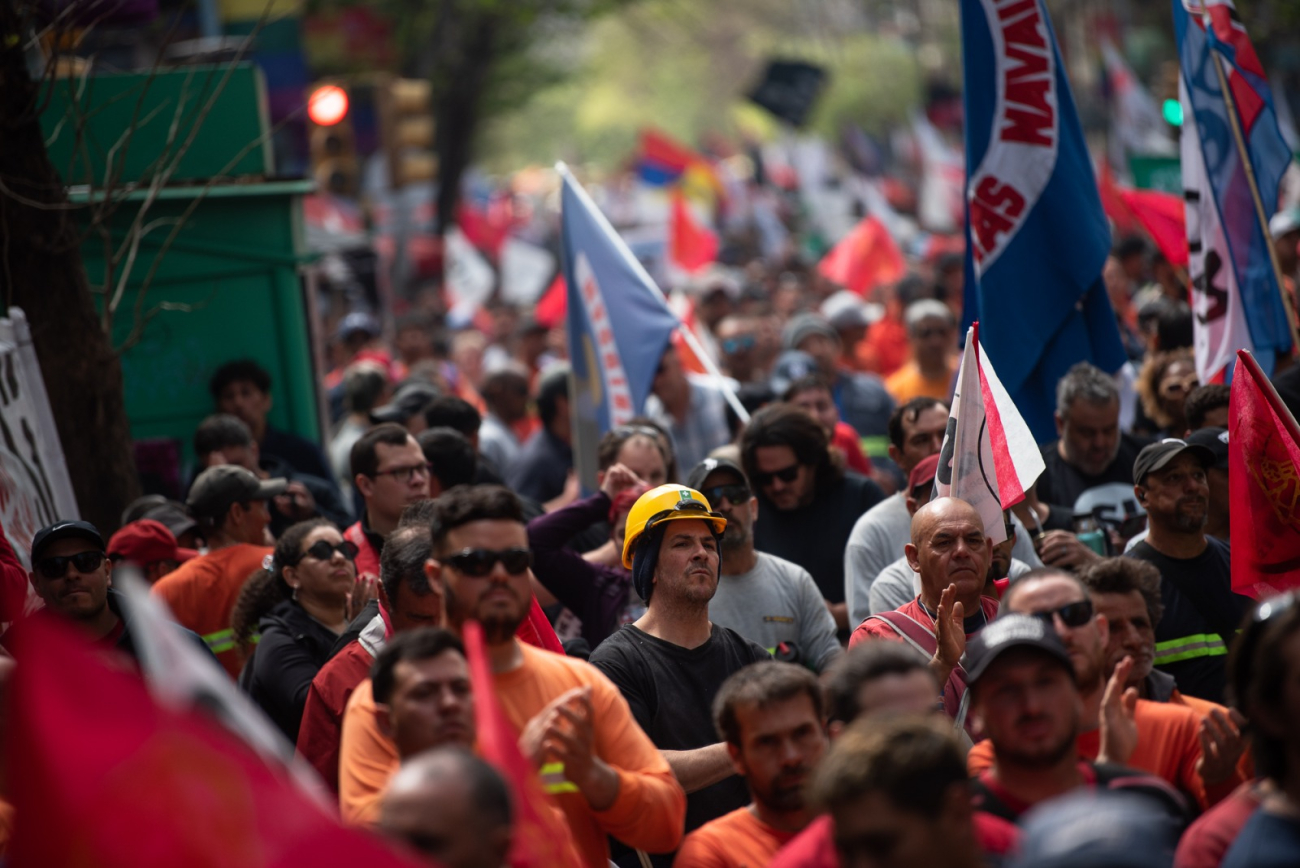 Con la convocatoria del PIT-CNT, en respaldo a los sindicatos de la educación y otros gremios que se encuentran en conflicto, miles de trabajadoras y trabajadores marcharon por el centro de Montevideo en protesta contra la reforma educativa y en defensa del empleo, denunciando recortes en educación, salud y jubilaciones y a favor de la papeleta blanca del Sí por la seguridad social.